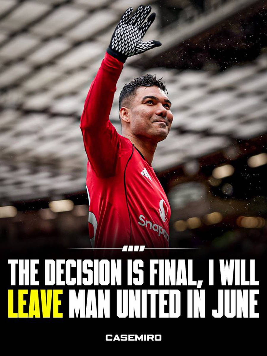 每周都会有关于曼联老将卡塞米罗是否会留队的传闻出现,但答案一直很明确:他不会留下。本周,卡塞米罗已经官宣了自己离开的具体时间,他将在6月份正式告别老特拉福德。34岁的巴西铁腰对外表示:「之前公布的决定就是最终决定,我会在6月份离开曼联。」