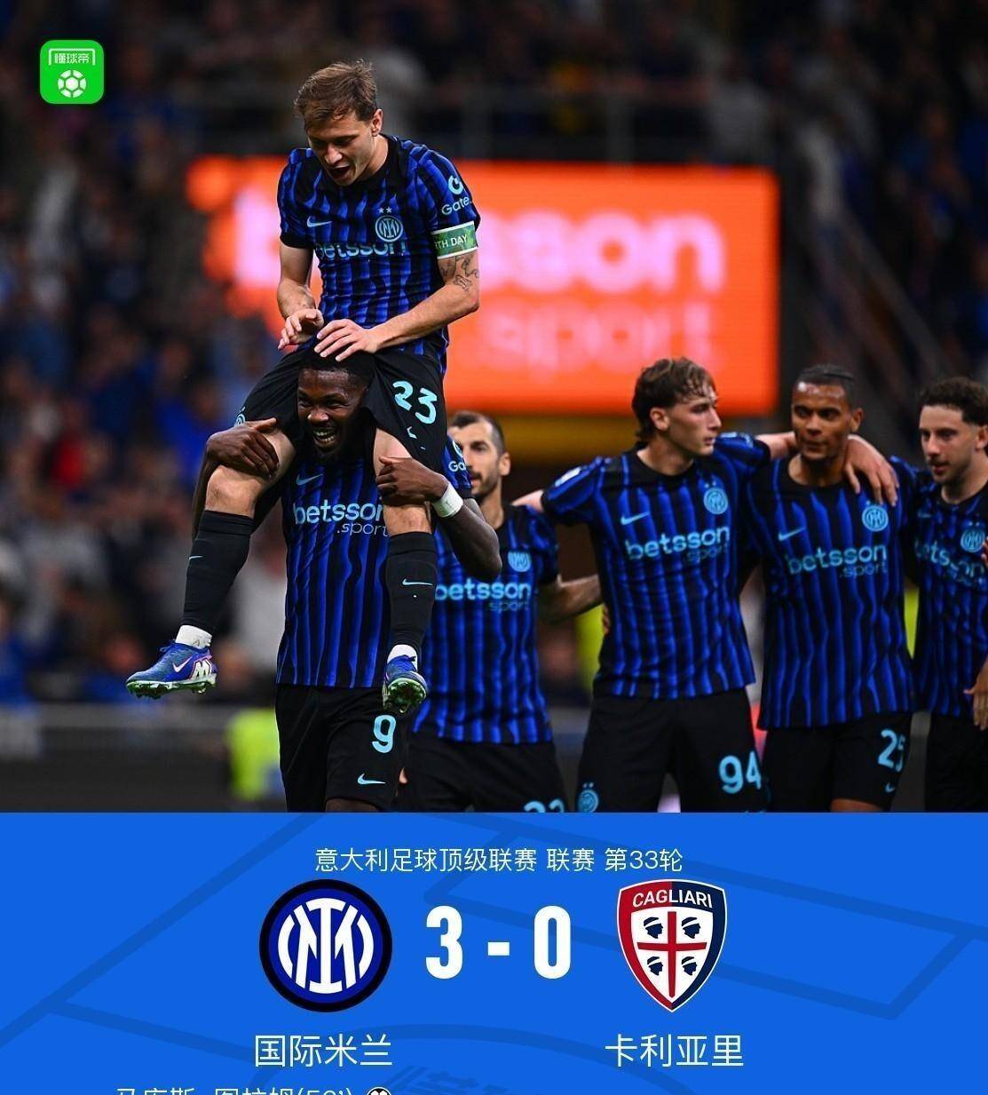 意甲联赛打到第33轮,国际米兰在主场3-0干净利落地拿下了卡利亚里。这场胜利让他们的积分达到了78分,继续在积分榜上一骑绝尘。而就在几天前,他们的争冠对手AC米兰在主场爆出惊天大冷门,0-3输给了乌迪内斯。这一正一反,让国米对第二名那不勒斯的领先优势扩大到了9分,在联赛仅剩最后5轮的情况下,这个差距几乎意味着冠军奖杯已经提前刻上了蓝黑军团的名字。为什么说“几乎”?因为足球是圆的,理论上还有翻盘可能。但看看国米这赛季面对中下游球队那恐怖的稳定性,你就会明白,所谓的理论,可能真的只存在于数学课本里了。