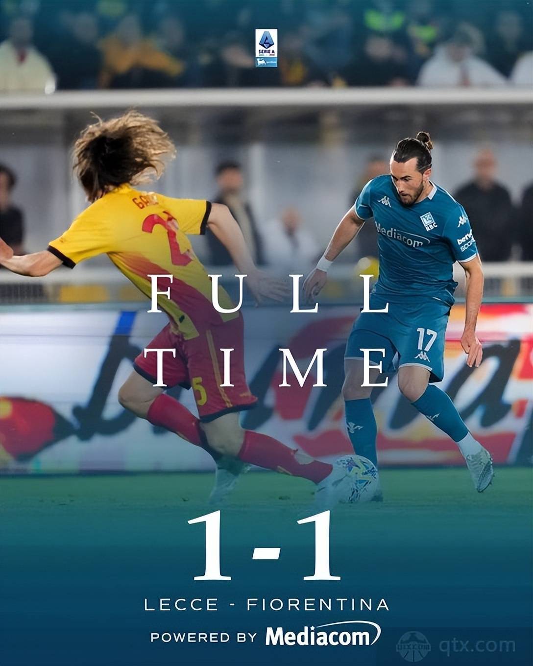 比赛最后二十分钟,两队都创造出改写比分的绝佳机会。莱切球员皮耶罗蒂接左路倒三角传球,禁区内迎球射门高出横梁,错失反超比分的黄金良机。佛罗伦萨多次打出犀利快速反击,却始终没能攻破对手的球门。主裁判吹响全场比赛结束的哨声,比分最终定格在 1-1,两队各自拿到一个联赛积分。